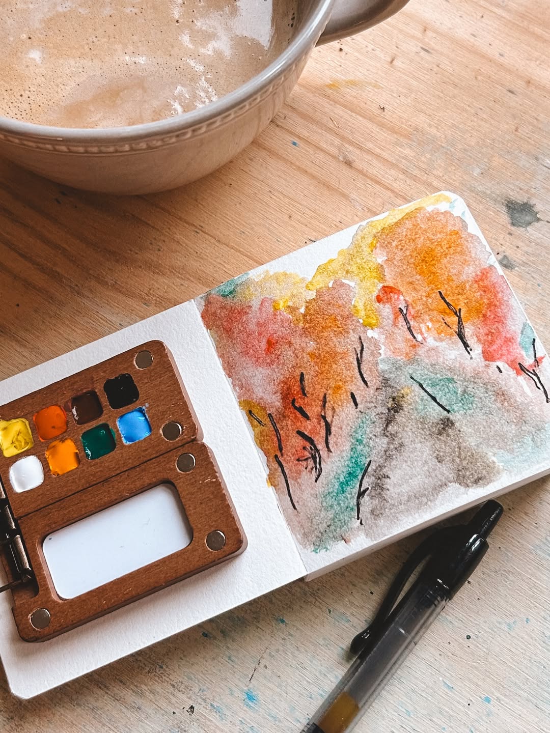 Ja. Kitet är kompakt och portabelt, miniformatet gör att det lätt får plats i en väska. Det är perfekt för att måla på en resa, café, park eller vart du än är. Du kan alltså skapa och koppla av när som helst och var som helst utan att behöva bära med stora konstmaterial.